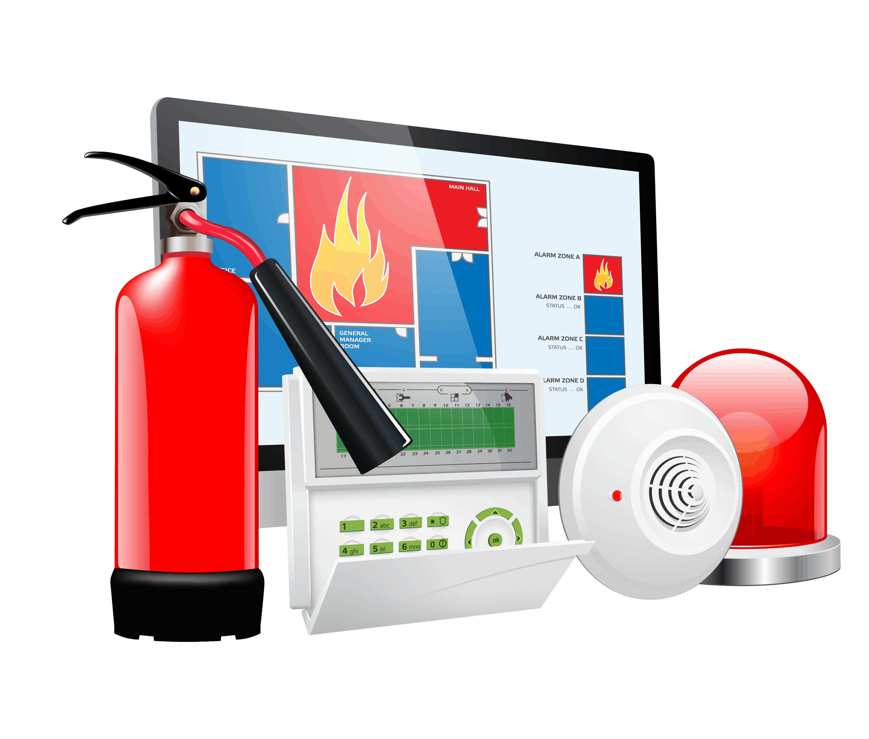 - Системы оповещения и эвакуации. Системы предназначены для предупреждения людей о пожаре и обеспечения их безопасной эвакуации. Они включают в себя сигнальные устройства, такие как звуковые и световые сирены, а также системы аварийного освещения и маршрутов эвакуации.
