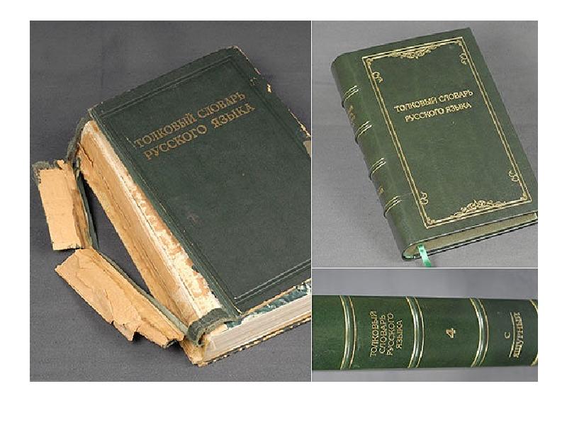 - Переплет: Восстановление или замена оригинального переплета книги.